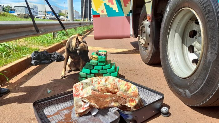 A Polícia Militar Rodoviária, em operação conjunta que vem sendo realizada na manhã desta sexta-feira (08), localizou e apreendeu uma mala contendo 25 tijolos de maconha. A bagagem pertence a uma mulher de 53 anos que estava em um dos ônibus fiscalizados durante a ação.