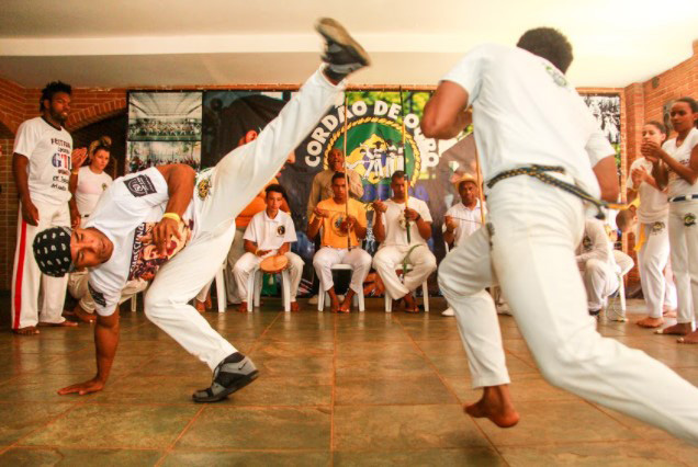 O projeto “Arte e Ginga”, iniciativa que visa manter e propagar a história da capoeira no Brasil, por meio de vivências, atividades teóricas e práticas, oficinas de musicalização, workshops e danças correlatas como o maculelê, samba de roda e puxada de rede, para crianças, adolescentes e adultos, iniciou no dia 16 de fevereiro, a sua 4ª edição. As aulas serão ministradas pelo Mestre Tigrin e instrutores do Grupo Cordão de Ouro.