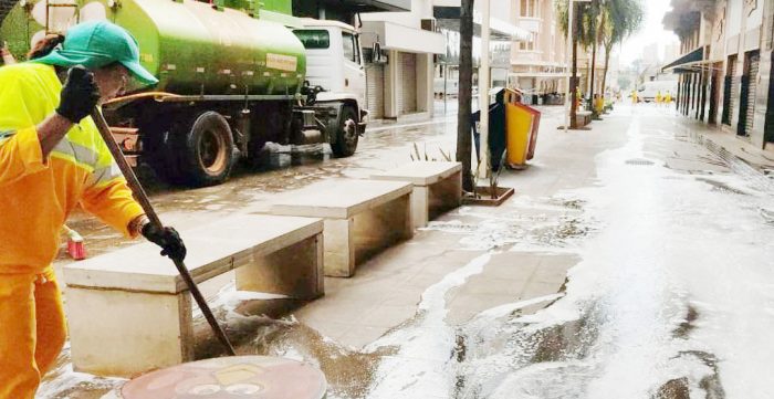 O calçadão de Ribeirão Preto passou por nova ação de higienização no último domingo, 18 de julho. Uma equipe do Departamento de Limpeza Urbana, da Secretaria Municipal de Infraestrutura, percorreu toda a extensão do corredor comercial fazendo a lavagem do chão e mobiliários com produto de limpeza. A ação contou com 14 trabalhadores e o auxílio de um caminhão-pipa. A limpeza foi realizada no domingo porque quando a movimentação de pedestres é reduzida na região Central, evitando transtornos ao comércio local.