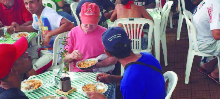 No final da manhã, os moradores de rua almoçaram nas mesas espalhadas pela praça. O cardápio do dia foi arroz, feijão, carne moída e legumes, com frutas de sobremesa. O responsável pelo Mudando Vidas, Ricardo Tostes, comemorou um recorde –nove moradores de rua aceitaram a proposta de abrir mão do uso de álcool e ou substâncias entorpecentes, em troca do acolhimento na casa mantida pela entidade no Jardim Paiva.