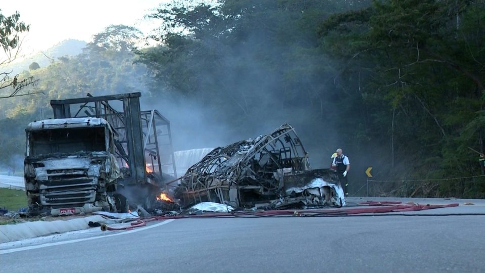 Imediatamente o fogo se espalhou dos veículos para uma área de vegetação na região. O Corpo de Bombeiros atuou no local junto com a concessionária que administra a pista para apagar o incêndio. O trecho fica a 30 km da divisa com o Estado do Rio de Janeiro.