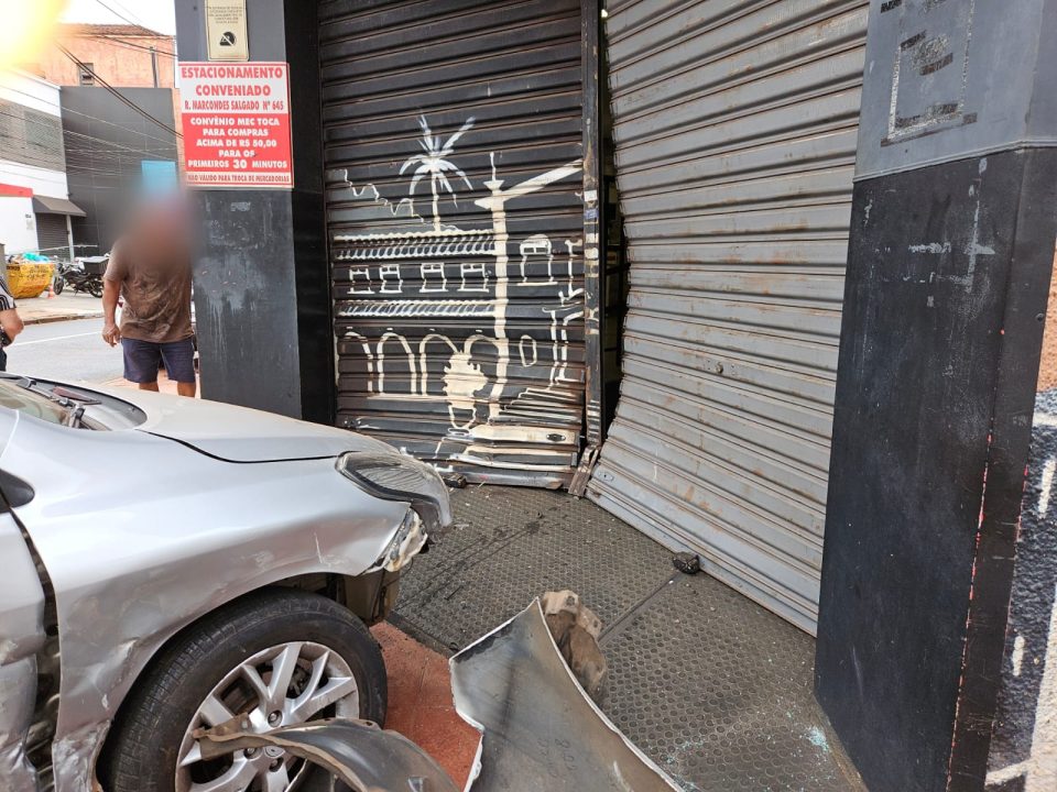 Durante a colisão, um dos veículos envolvidos ficou descontrolado e acabou atingindo as portas de uma loja instalada na esquina. Apesar do impacto, ninguém se feriu.