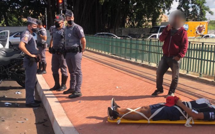 Na oportunidade, ambas as vítimas foram socorridas e encaminhadas até unidades de saúde para o recebimento de atendimento médico. O policial militar teria sofrido uma possível fratura na clavícula, enquanto a segunda vítima um trauma na face.
