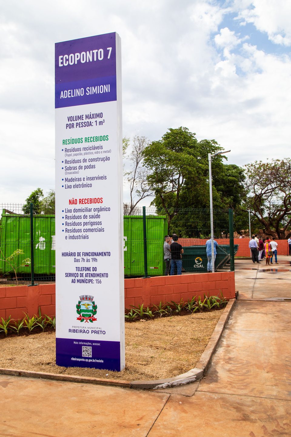 A prefeitura de Ribeirão Preto inaugurou, nesta quinta-feira, 24 de outubro, o sétimo ecoponto da cidade, onde a população pode descartar materiais recicláveis, resíduos da construção civil, lixo eletrônico e inservíveis. Fica na avenida General Euclydes de Figueiredo nº 120, no bairro Adelino Simioni, Zona Norte. No local também funcionará a uma usina de reciclagem da construção civil.