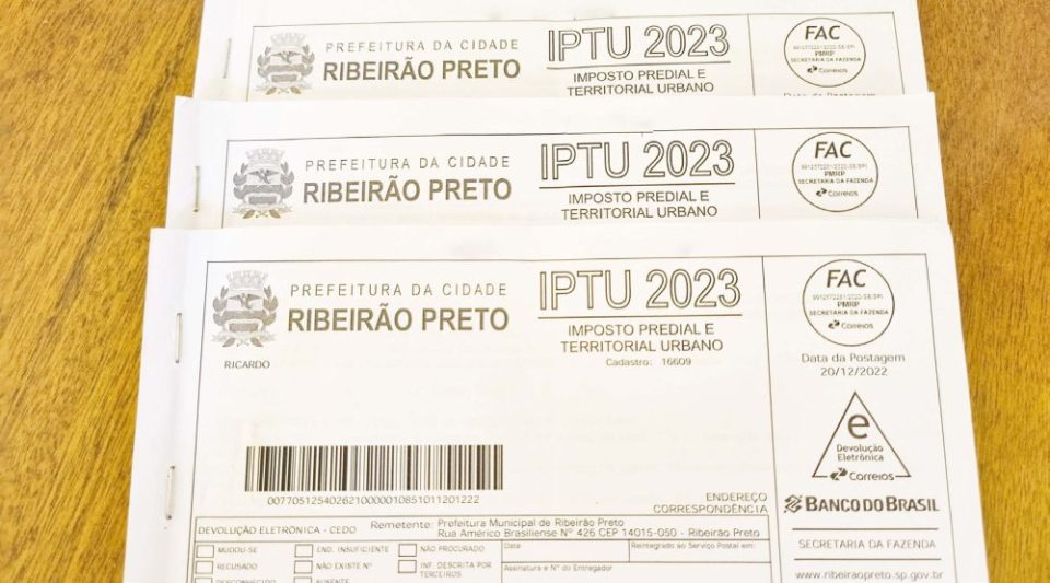 Para 2023, a Secretaria Municipal da Fazenda estima que o Imposto Predial e Territorial Urbano vai injetar R$ 494.000.000 nos cofres de Ribeirão Preto, aumento de 12,5% e R$ 55.000.000 a mais que os R$ 439.000.000 previstos para 2022. A previsão de arrecadação consta da Lei Orçamentária Anual (LOA).