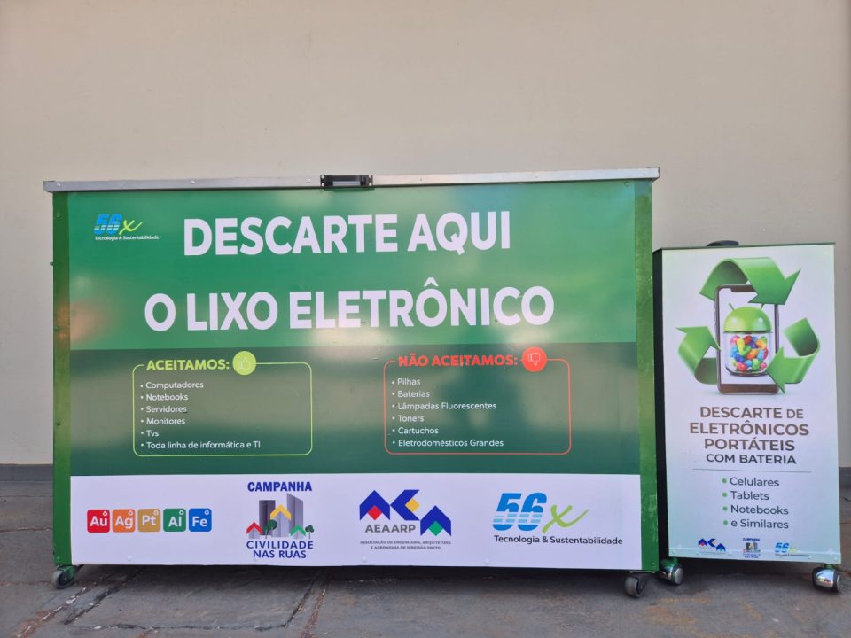 A AEAARP lança, a partir de 23 de abril, um ecoponto para coleta de lixo eletrônico em sua sede, ampliando a campanha “Civilidade nas Ruas” em Ribeirão Preto. A iniciativa ocorre em parceria com a empresa 56X Tecnologia e Sustentabilidade e visa facilitar o descarte correto de pequenos eletroeletrônicos. O ecoponto AEAARP receberá: computadores e notebooks, celulares, servidores, monitores e TVs, eletroeletrônicos, toda linha de informática e TI, telefonia e comunicação. O ecoponto não receberá: pilhas, baterias, lâmpadas fluorescentes, toners, cartuchos e eletrodomésticos grandes. Além da coleta, a ação busca conscientizar a população sobre sustentabilidade e responsabilidade ambiental. O material será destinado à reciclagem especializada e parte da ação resultará na doação de cadeiras de rodas a entidades sociais.