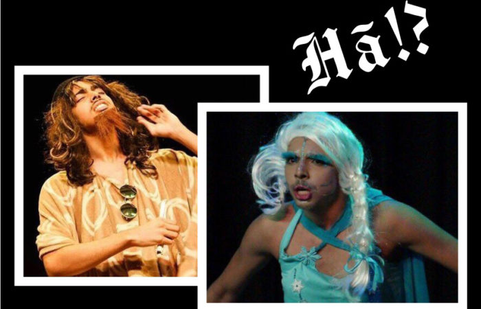 No sábado (21), mais comédia no Teatro Santarosa. O espetáculo “Hã!?” estará em cartaz em duas sessões, às 19 e às 21 horas. Jesus não quer morrer pela humanidade? Rainha Elsa revoltada com Damares? Mulher viciada em rebolar? Briga de marido e mulher ninguém mete a colher? O que a paixão pode te causar?