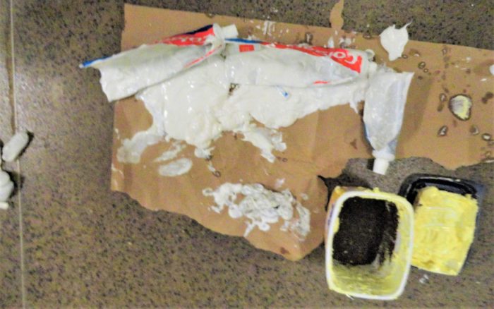 No pote de margarina, a equipe flagrou cerca de 42 gramas do entorpecente. Já nas embalagens de pasta de dente, foram apreendidos 17 porções contendo maconha.