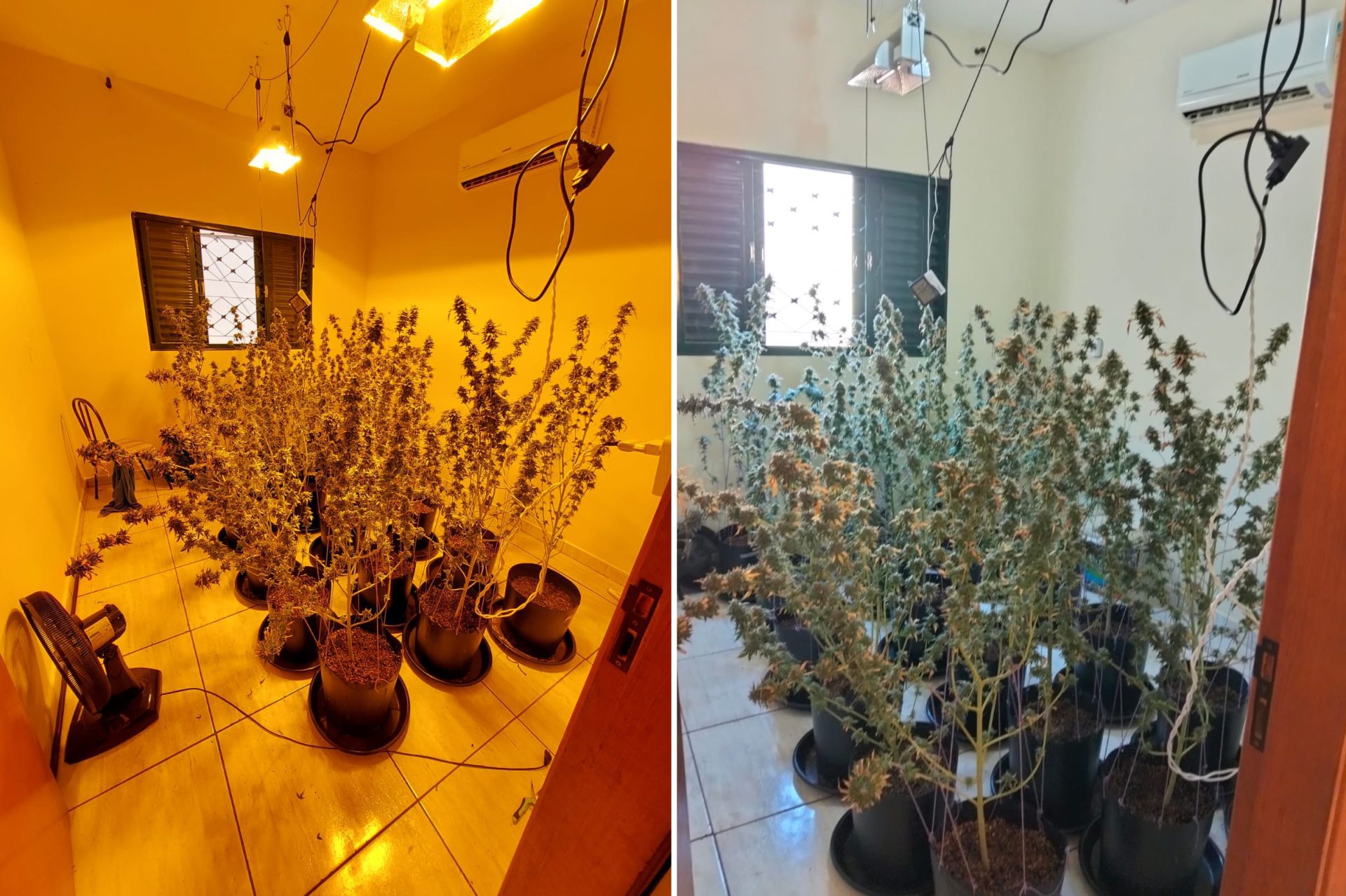 O homem cultivava 43 pés de maconha em dois quartos da residência. Em ambos os cômodos havia ventiladores, ar condicionado e iluminação especial, imitando a luz do sol 24 horas por dia.
