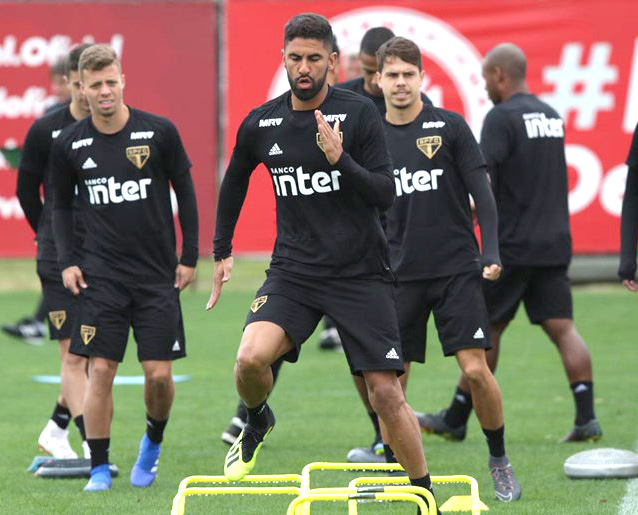 Com os desfalques de Éder Militão, Arboleda e Hudson por suspensão, o treinador uru­guaio aproveitou o treino para dar mais ritmo e observar os pos­síveis substitutos. A tendência, no entanto, é que Bruno Peres seja o titular na lateral direita e estreie com a camisa tricolor, uma vez que foi convocado a se juntar à delegação em Belo Horizonte.