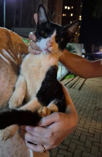 Esse gatinho macho, foi encontrado perdido e miando desesperadamente na avenida do Jd. Olhos D’Água, deve ter dono porque é muito manso. Pode ter vindo no motor de algum carro. Qualquer informação (16) 99198-4711.