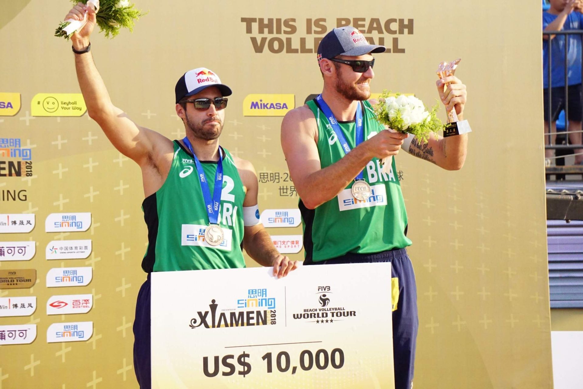Em confronto realizado neste domingo, na China, os brasileiros Alison e Bruno Schmidt faturaram a medalha de bronze da etapa de Xiamen do Circuito Mundial de Vôlei de Praia ao venceram na decisão do terceiro lugar da competição os poloneses Losiak e Kantor por 2 sets a 0, com parciais de 21/15 e 21/13.