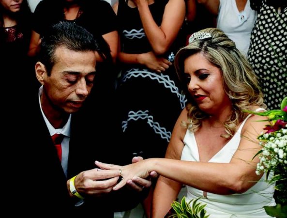 Foi realizado no Hospital Ribeirânia o casamento do paciente José Mário Jardim Nascimento com Marise Cristina Gomes. O operador de empilhadeira, de 49 anos, e a cuidadora de idosos, de 46 anos, estão juntos há 2 anos. O paciente estável, mas com quadro grave, está internado desde o dia 27 de novembro na instituição hospitalar. A equipe do HR preparou a cerimônia e a festa para os noivos. Saúde e felicidades!