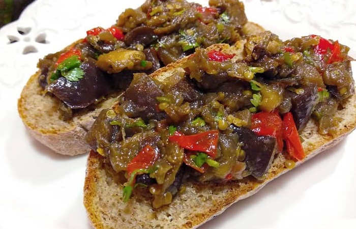 6. Após a berinjela assar, coloque nela esse refogado e misture.