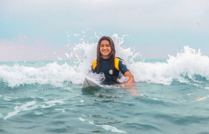 “Minha vida mudou muito porque agora eu decidi de verdade que quero ser surfista. Mudei de escola para ficar melhor para o Instituto, mudei minha rotina, praticamente tudo”, contou, lembrando que também precisa aprender a se portar fora da água. “É bem difícil, mas cada atleta tem de fazer isso e se preparar. O Instituto ajuda, tem media training, isso me ajuda bastante para dar entrevista, para desenvolver, não precisa ser boa só dentro da água, mas fora também”.