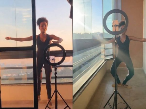 Eu falei pra vocês que essa semana eu ia voltar a fazer atividade física, então vou cumprir. Eu vou fazer aulas de balé”, contou Thelma nos vídeos. Ela então mostrou os bastidores da aula, feita por chamada de vídeo, em que aparece dançando na sacada do apartamento onde mora.