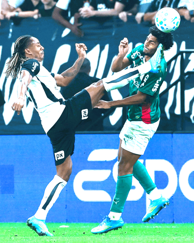 Cesar Greco/Palmeiras Luighi, do Palmeiras, disputa bola com Carrillo, do Corinthians
