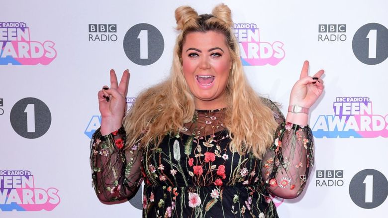 A inglesa Gemma Collins, de 36 anos, não percebeu que o piso do palco, de onde sairiam artistas para se apresentar, estava se abrindo e caiu feio. Ela, no entanto, se recuperou rapidamente e logo ficou em pé.