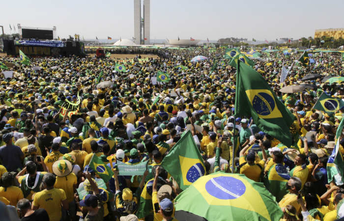 Aglomeração: manifestantes pró-governo participam de ato na Esplanada dos Ministérios