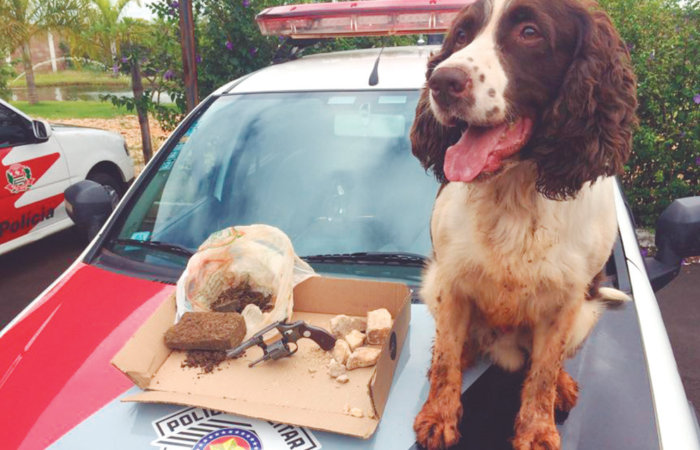 Em operação conjunta na ci­dade de Luiz Antônio, a Polícia Mi­litar localizou um revólver calibre 32 com munição intacta dentro do travesseiro e uma bagana de maconha nesta quinta-feira, 8 de março. Em seguida, com o apoio do infalível cão Aquiles, a equipe da PM fez buscas em um canavial e encontrou 317,60 gramas de ma­conha e mais 349,96 gramas de crack. A ocorrência foi registrada da delegacia da cidade. Alex de Paula Nascimento, e 25 anos, foi preso em flagrante.