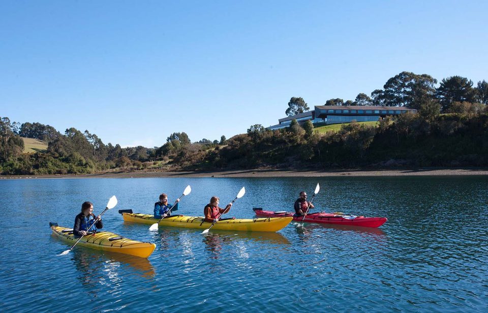 Quando o assunto é aventura na água, destacam-se as navegações na embarcação própria do hotel e tours como a Rota dos Missionários. Trata-se de um passeio de caiaque que sai da baía em frente ao Tierra Chiloé e recria a rota que os antigos missionários jesuítas usavam para evangelizar a população chilota.