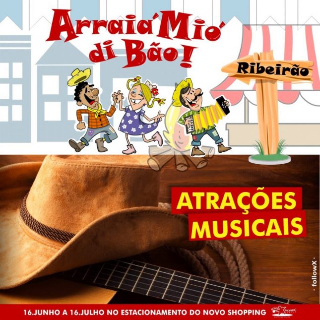 A organização do “Arraiá Mió Di Bão-Ribeirão!” divulgou a programação que irá reunir artistas do gênero sertanejo e música raiz. O evento acontece no estacionamento do Novo Shopping, zona Leste da cidade, a partir do dia 16 de junho e se estenderá até 16 de julho, sempre às sextas, sábados e domingos, além do feriado do aniversário da cidade, no dia 19 de junho.