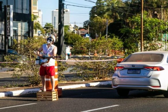 Artista solitário e mascarado chama a atenção em performances em avenidas de cidades pelo país