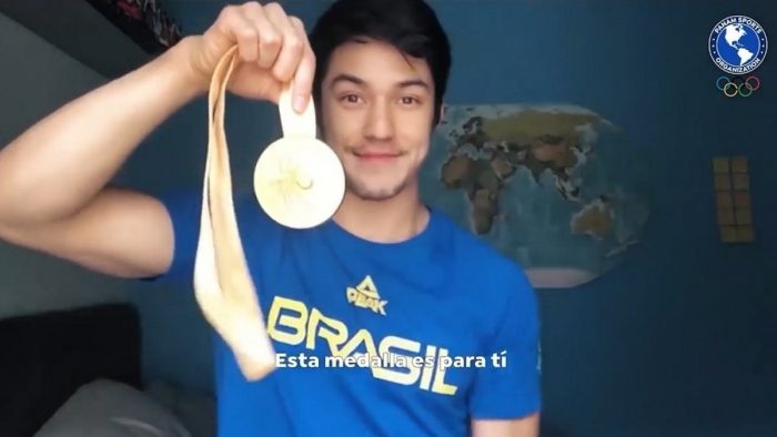 Arthur Nory e mais 13 campeões pan-americanos homenageiam profissionais da saúde