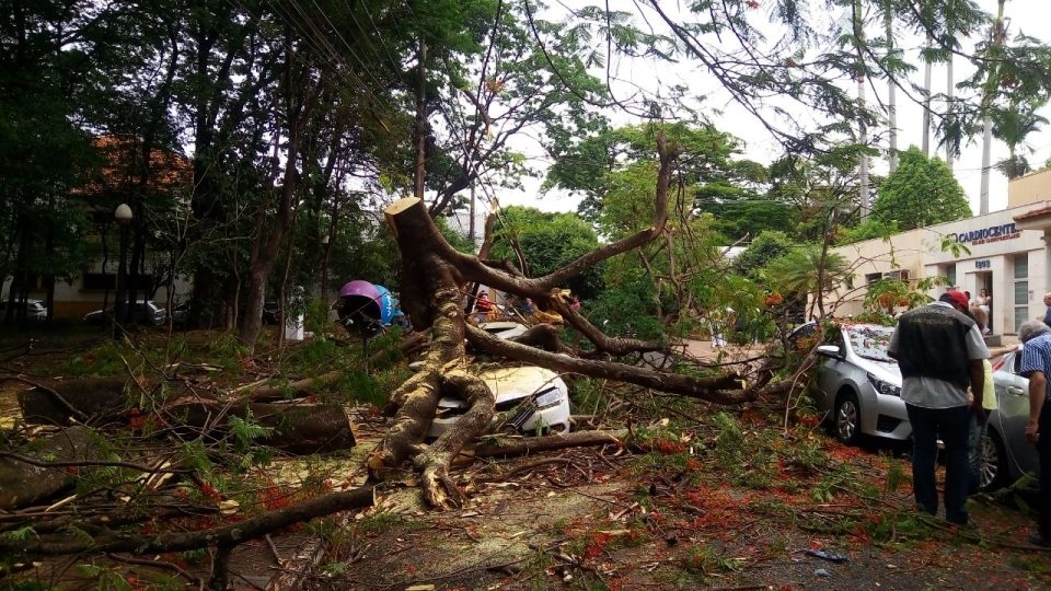 A queda de galhos de uma árvore de grande porte, na manhã desta segunda-feira, 30 de outubro,  na Praça Camões, em frente ao Hospital Beneficência Portuguesa, na região central de Ribeirão Preto, destruiu dois veículos. O Corpo de Bombeiros foi acionado. Ninguém ficou ferido. Ainda não há informações sobre o que teria provocado a queda dos galhos, já que não ventou forte na região.