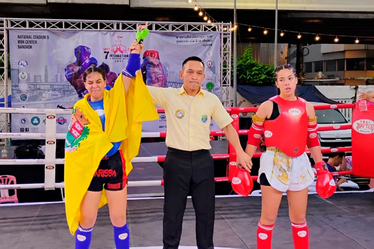 A atleta Larissa Silva Barros, natural de Sertãozinho, na região de Ribeirão Preto, celebrou o título mundial de muay thai conquistado na última semana, em Bangcoc, capital da Tailândia. A jovem levou o troféu na categoria entre 14 e 16 anos do ITMA – WMO World Championships.