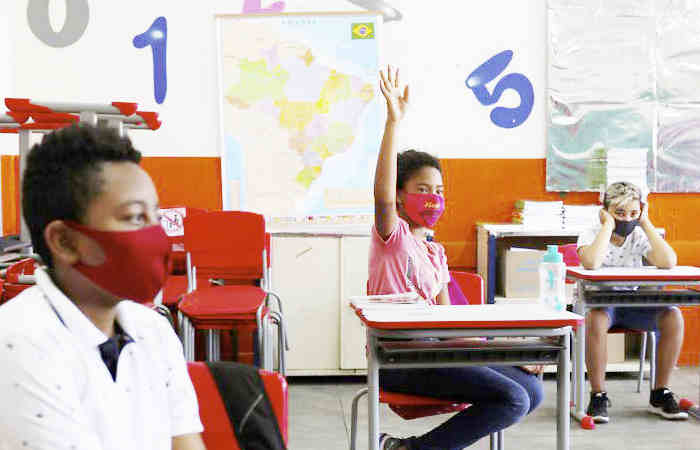 A partir de 1º de agosto, as escolas de São Paulo poderão retomar as aulas presenciais sem que seja estabelecido um limite máximo de alunos em sala. Atu­almente, por causa da pandemia de covid-19, as aulas presenciais no estado são permitidas desde que a capacidade máxima fique em 35% do número de alunos e com limite mínimo de 1,5 metro de distância entre eles.