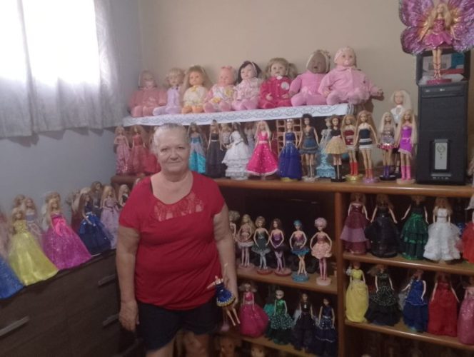 Zilda Aparecida Bernardes, de 60 anos, não soube o que é ter bonecas na infância porque os pais não tinham condições de comprar. Hoje recupera bonecas muitas vezes retiradas de lixeiras ou caçambas e doa para crianças que não podem comprar