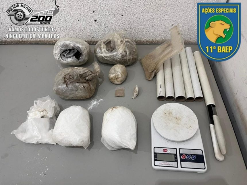 Os agentes foram até lá e apreenderam mais drogas. No total, foram cerca de 1,2 quilos de cocaína, quase um quilo de maconha e 259 gramas de MD, uma droga sintética.