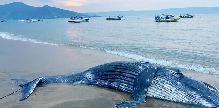 Ainda na segunda-feira, a equipe PMP-BS do Insti­tuto Argonauta recebeu ou­tro acionamento envolvendo uma baleia morta, em estado mais avançado de decom­posição, boiando na altura da Praia da Almada, situada em Ubatuba. Com o estágio avançado de decomposição não foi possível ainda iden­tificar qual a sua espécie. O animal foi apoitado na Praia do Prumirim, para que a equipe pudesse realizar uma avaliação mais detalhada.
