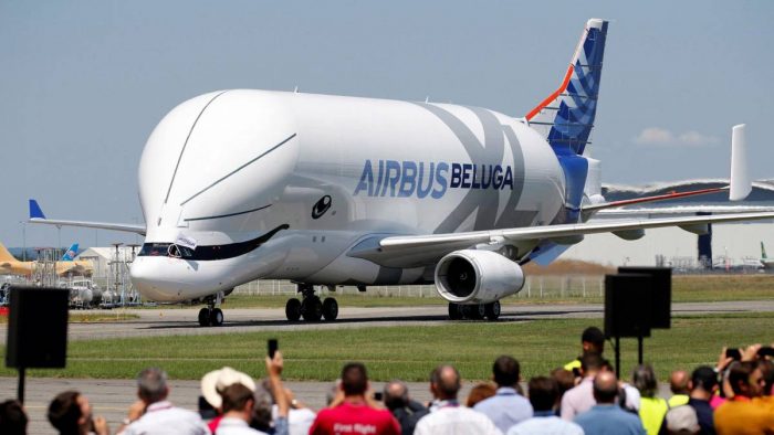 Os principais materiais transportados pela “baleia voadora” são componentes de aeronaves entre os locais de produção e as linhas de montagem, localizadas na Alemanha, França e China.
