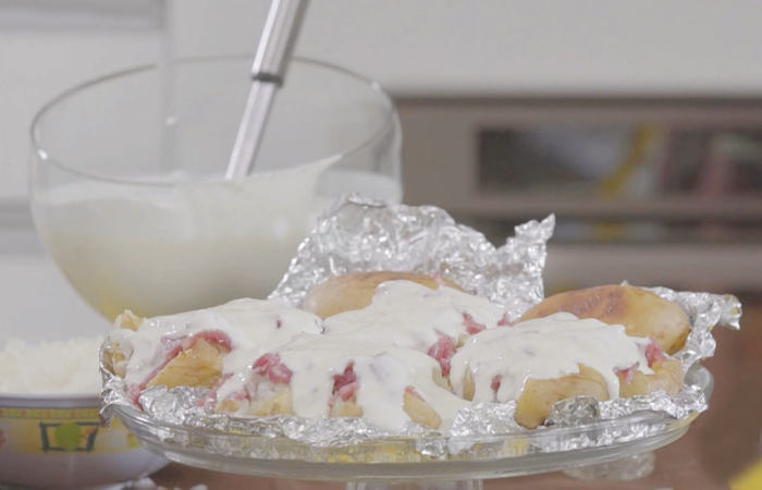 Após lavar e secar as batatas, use uma faca fina e a introdu­za três vezes de cada lado de cada uma das batatas; envolta cada uma delas em papel alumínio, envolvendo bem para que não abram; leve ao forno quente e asse por uma hora e meia, deixando 45 minutos de um lado antes de virar para assar do outro lado.