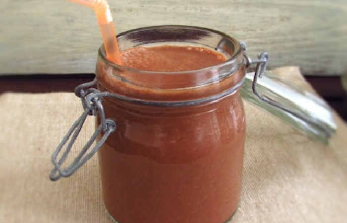 1. Coloque todos os ingredientes num liquidificador e bata até obter uma mistura bastante cremosa, por cerca de 30 segundos.