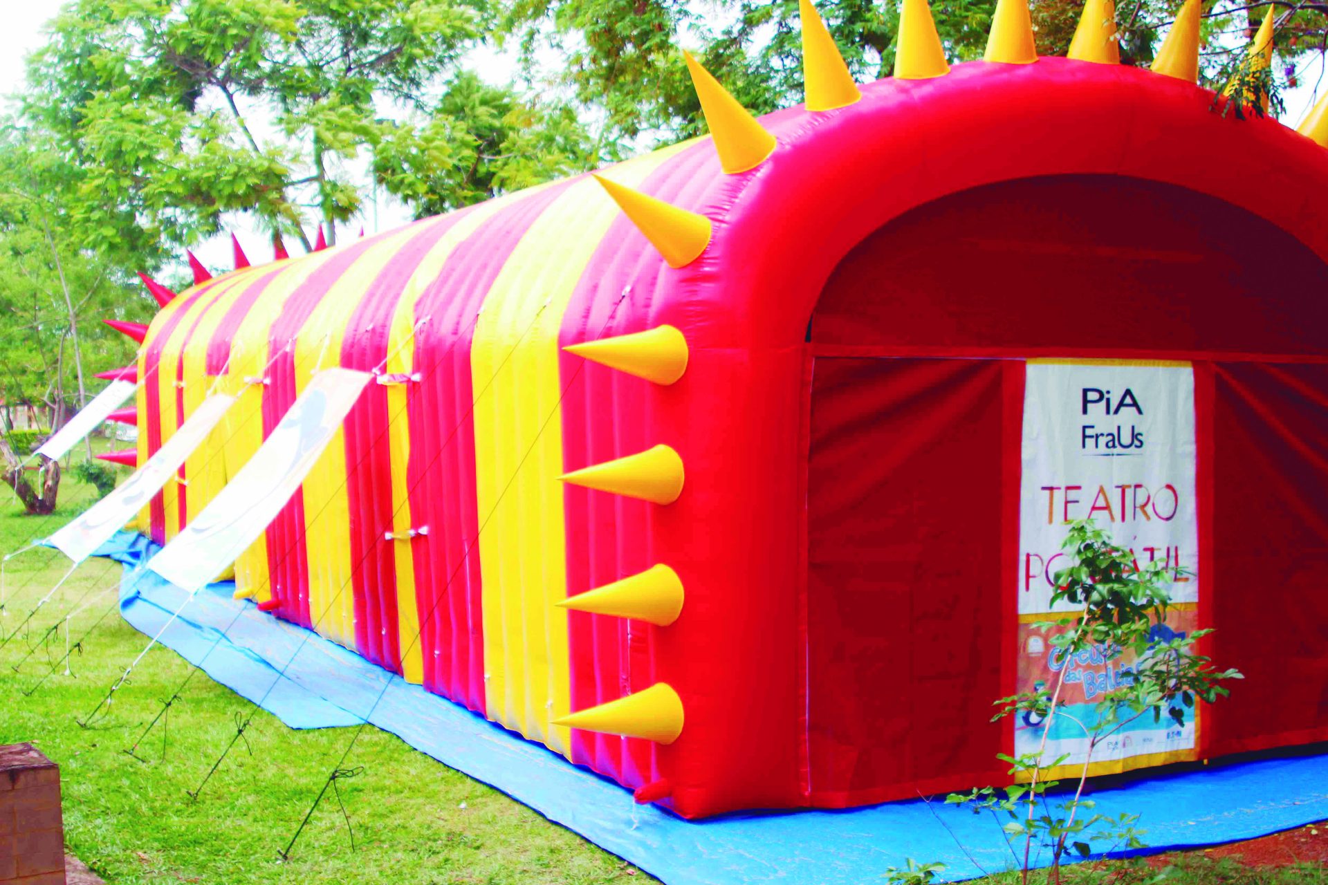 A encenação acontece em uma extraordinária estrutura inflável, cada dia em um lugar diferente. Para quem observa de fora, percebe um impactante teatro colorido, que chega nos espaços públicos de diversas cidades do interior de São Paulo, criando curiosidade e encantamento por onde passa. Já para quem entra dentro da estrutura e assiste o espetáculo, sai com novas expectativas e aprendizados conduzidos pela história.