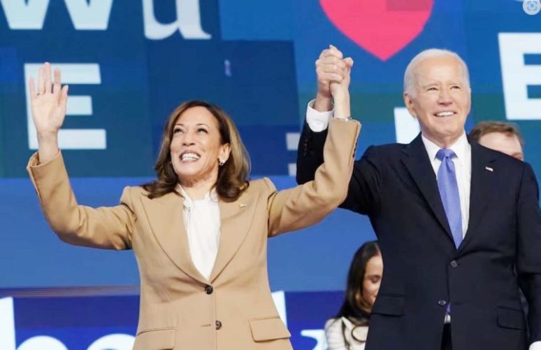 A multidão começou novamente a gritar “obrigado Joe!”, ao que o democrata respondeu: “Obrigado, Kamala”. Biden declarou a apoiadores entusiasmados que eles têm uma “escolha fundamental” para fazer nas urnas em 5 de novembro, citando o que chamou de “uma agenda perigosa” de Donald Trump que ataca a liberdade e a democracia. “Trump diz que os Estados Unidos está perdendo, mas quem está perdendo é ele”, afirmou.