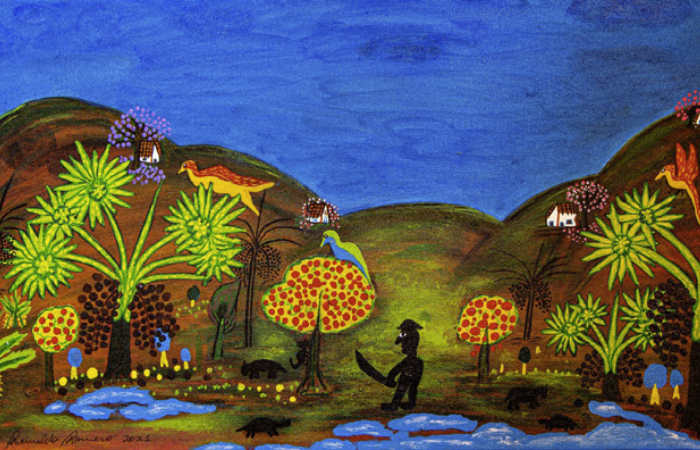 “Na BINaif, estou entre grandes ‘feras’ e ícones da arte naïf de São Paulo, do Brasil, da América do Sul e de outros continentes. A cultura popular brasileira, arte indígena, africana são minhas fontes de inspiração à elas, e aos mestres destas culturas e da arte naïf minha gratidão”, agradece.