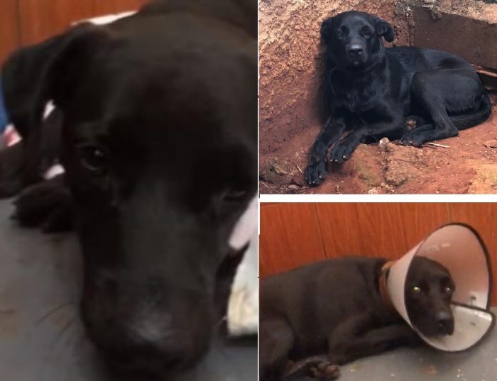 “Black”, o cachorro que gerou comoção nas redes sociais ao ser brutalmente agredido pelos próprios donos na manhã de segunda-feira, 21 de fevereiro, nos fundos de um posto de combustíveis, em Guaíra, se recupera bem da cirurgia na mandíbula.