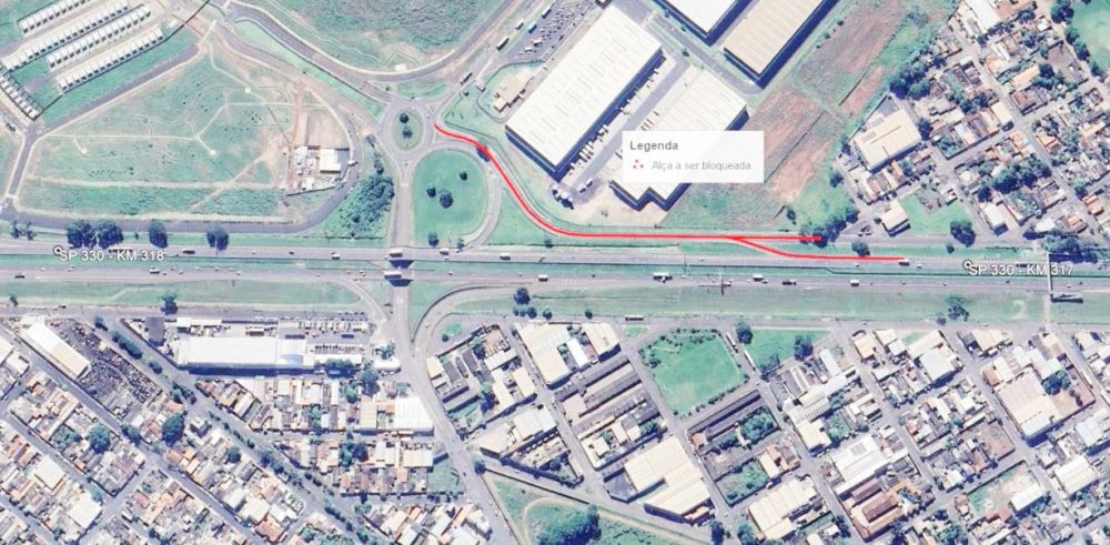 A Arteris ViaPaulista informa que mudou a data da interdição na alça de acesso à rotatória da avenida Brasil, em Ribeirão Preto, localizada no quilômetro 317,7 da Rodovia Anhanguera (SP-330), sentido Norte (Ribeirão Preto-Interior). Antes agendado para a próxima terça-feira, 10 de outubro, o bloqueio terá início no dia 16, segunda-feira após o feriadão de Nossa Senhora Aparecida