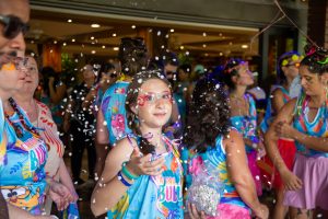 Entre as ativações estão a Roda da Gentileza, um círculo interativo que promove a troca simbólica de docinhos acompanhados de palavras positivas em diferentes idiomas; as Fitas da Gentileza, que carregam a frase da campanha, pensadas para presentear ou compartilhar boas energias; e o Mural da Folia, onde participantes deixam mensagens respondendo à pergunta “O que faz seu coração virar samba?”. Para famílias, a Blue Tree preparou o Carnaval da Família – Lounge da Cidade, um espaço com oficinas leves de máscaras, pintura, confetes sustentáveis, música e atividades integradas para crianças e adultos.
