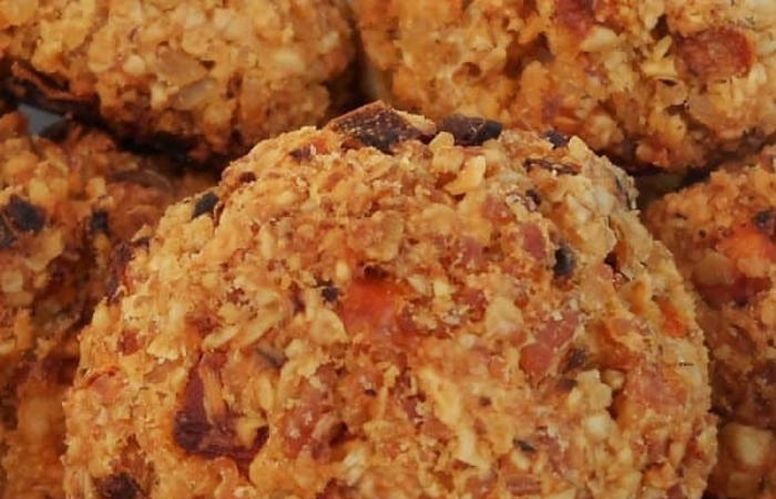 2. Com a ajuda de duas colheres, faça bolinhas e coloque em uma travessa antiaderente.