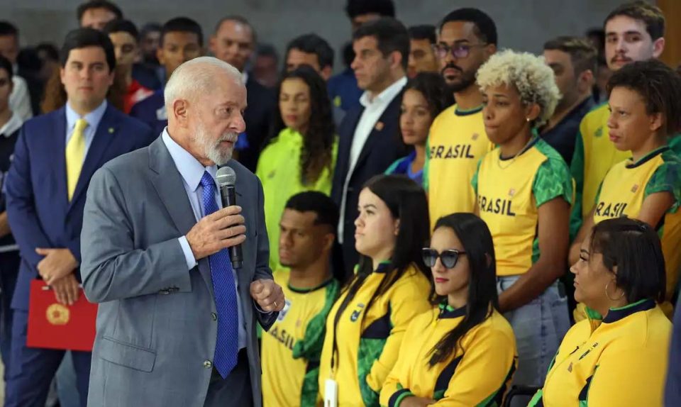 O presidente Luiz Inácio Lula da Silva recebeu, nesta quinta-feira, 11 de julho, no Palácio do Planalto, em Brasília, atletas que vão representar o Brasil nas Olimpíadas e Paralimpíadas de Paris, na França. No encontro, Lula assinou decreto que reajusta em 10,86% o Bolsa Atleta, programa que completa 20 anos em 2024 e estava há 14 anos sem reajuste.