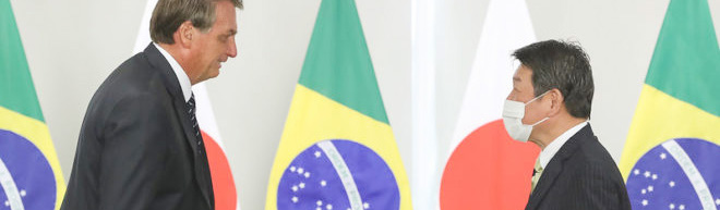 O presidente Jair Bolsonaro recebeu nesta sexta-feira o ministro dos Negócios Estrangeiros do Japão, Motegi Toshimitsu. A reunião ocorreu no Palácio do Planalto, em Brasília, com a presença do ministro Ernesto Araújo, das Relações Exteriores. Em suas redes sociais, Bolsonaro disse ter sido convidado para a abertura dos Jogos Olímpicos de Tóquio, no dia 23 de julho deste ano, e se referiu ao Japão como o “parceiro mais tradicional na Ásia com fortes laços culturais”.