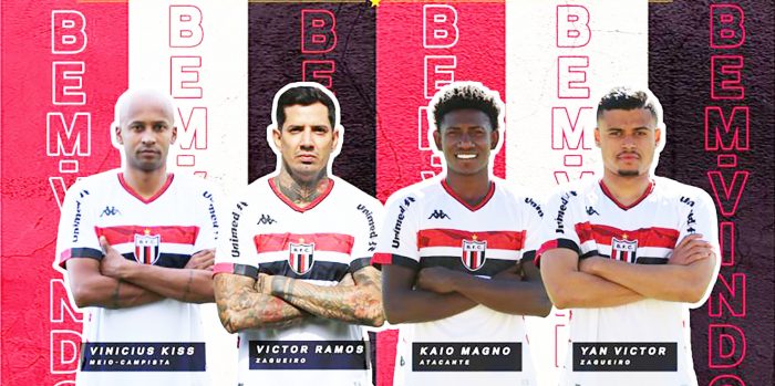 O Botafogo anunciou a contratação de mais quatro reforços para a disputa do Paulistão. Os zagueiros Victor Ramos, 31 anos, e Yan Victor, 25 anos, o volante Vinicius Kiss, 32 anos, e o atacante Kaio Magno, 21 anos. O quar­teto já está em Ribeirão Preto e treinando sob o comando de Alexandre Gallo.