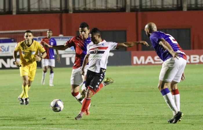 Aos 23 minutos, Marlon Freitas invadiu a área e rolou para Nadson, livre, bater por cima e perder grande oportuni­dade de marcar. O Botafogo fi­cou em cima e quase marcou aos 27. Após cruzamento na área, Bruno José testou firme para boa defesa de Thiago Rodrigues.