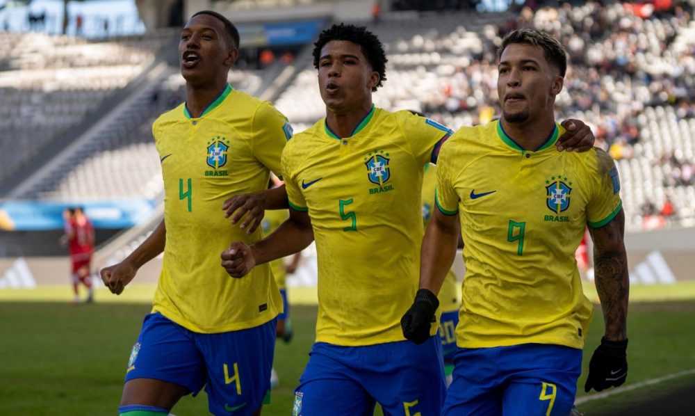 A seleção brasileira masculina Sub-20 derrotou a Tunísia por 4 a 1 na tarde de ontem (31) e avançou às quartas de final da Copa do Mundo na Argentina. Marcos Leonardo e Andrey marcaram no primeiro tempo no estádio Ciudad La Plata, e na etapa final teve mais dois: um de Matheus Martins e outro de Andrey, já nos acréscimos da partida. Antes do fim, a Tunísia descontou com Ghorbel.