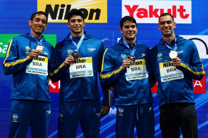 Após uma série de frustrações em outras finais, o Brasil conseguiu, neste domingo, sua primeira medalha no Mundial de Piscina Curta, em Abu Dabi. A conquista veio na final do revezamento 4×200 metros livre, disputa na qual a equipe formada por Fernando Scheffer, Murilo Sartori, Kaique Alves e Breno Correia terminou em terceiro lugar e levou o bronze para casa.